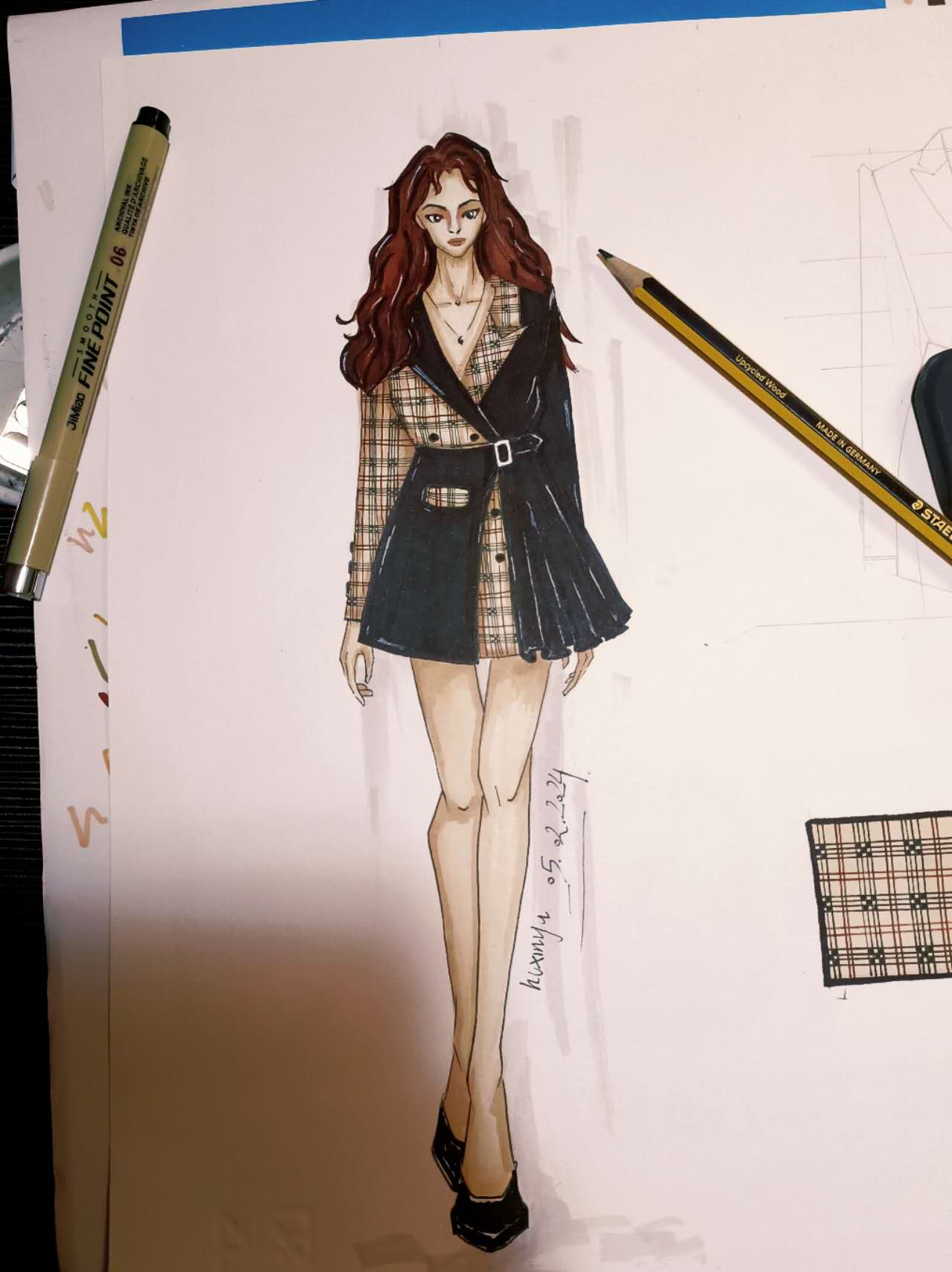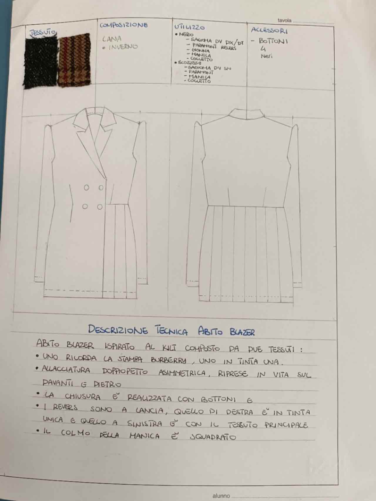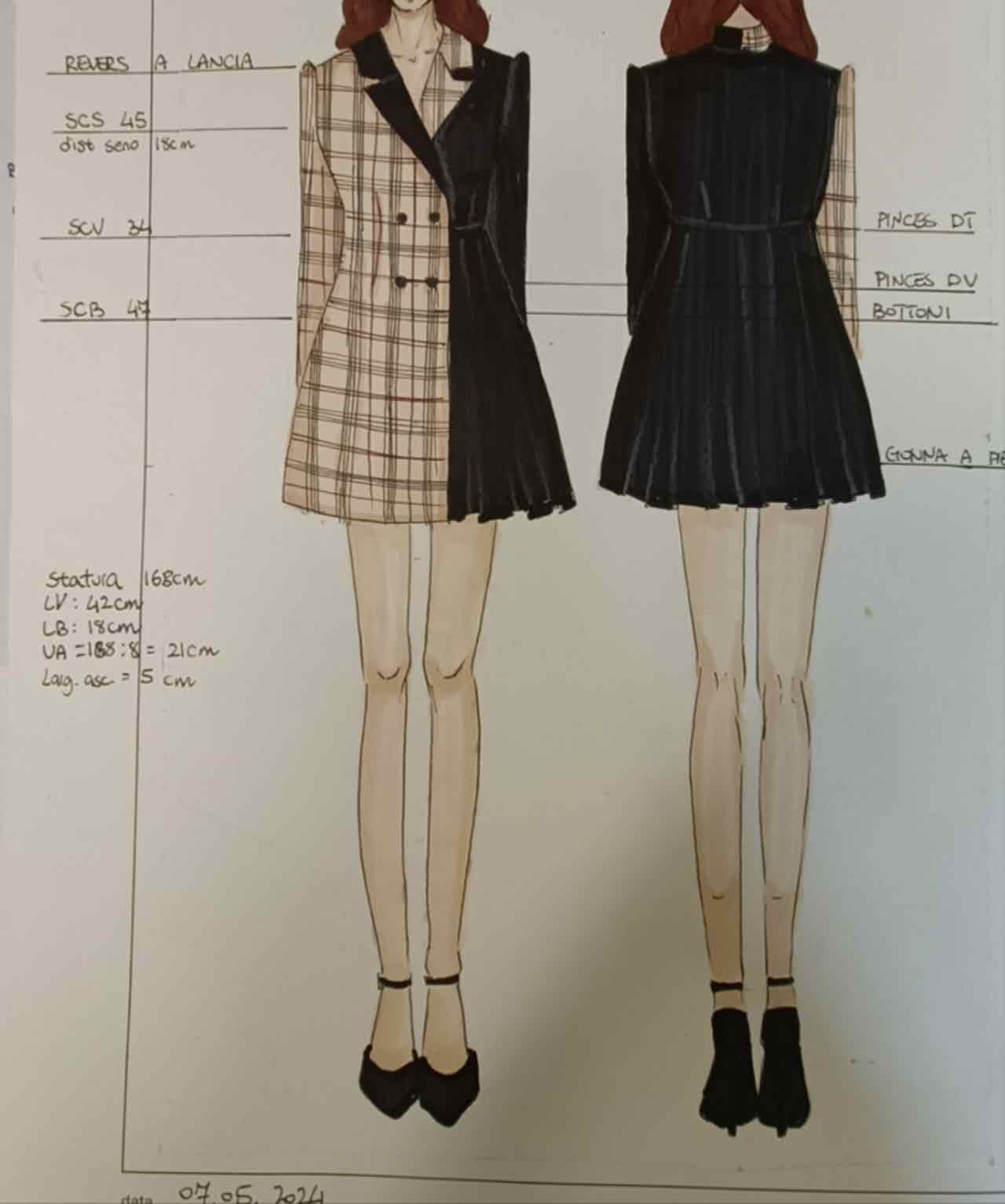 Abito Blaze ispirato al Kilt , composto da due tessuti :